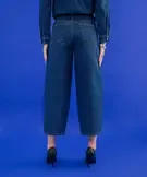 Jean barrel en denim de coton femme bleu