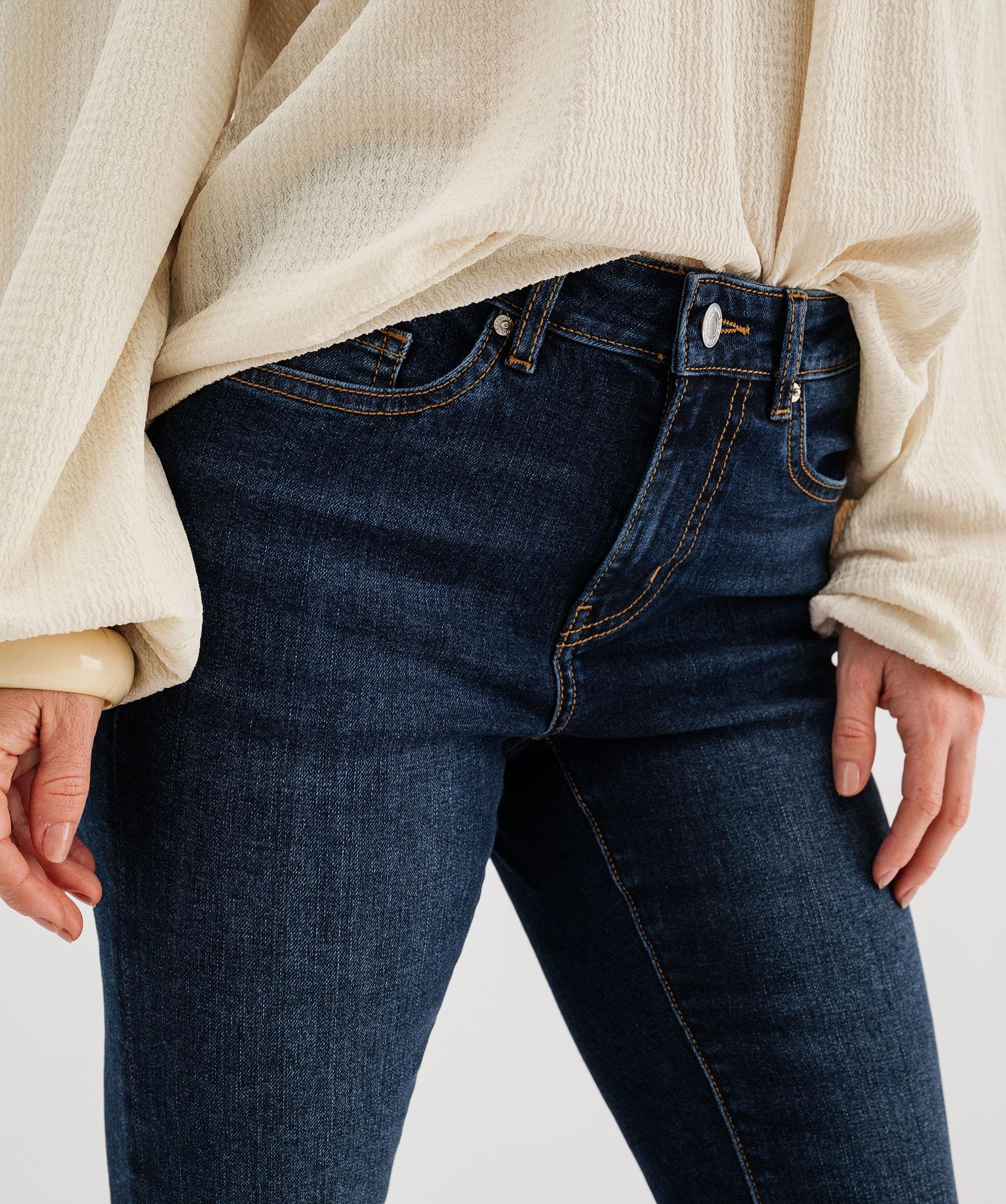 - Coupe bootcut : taille normale, jambe ajustée, bas évasé