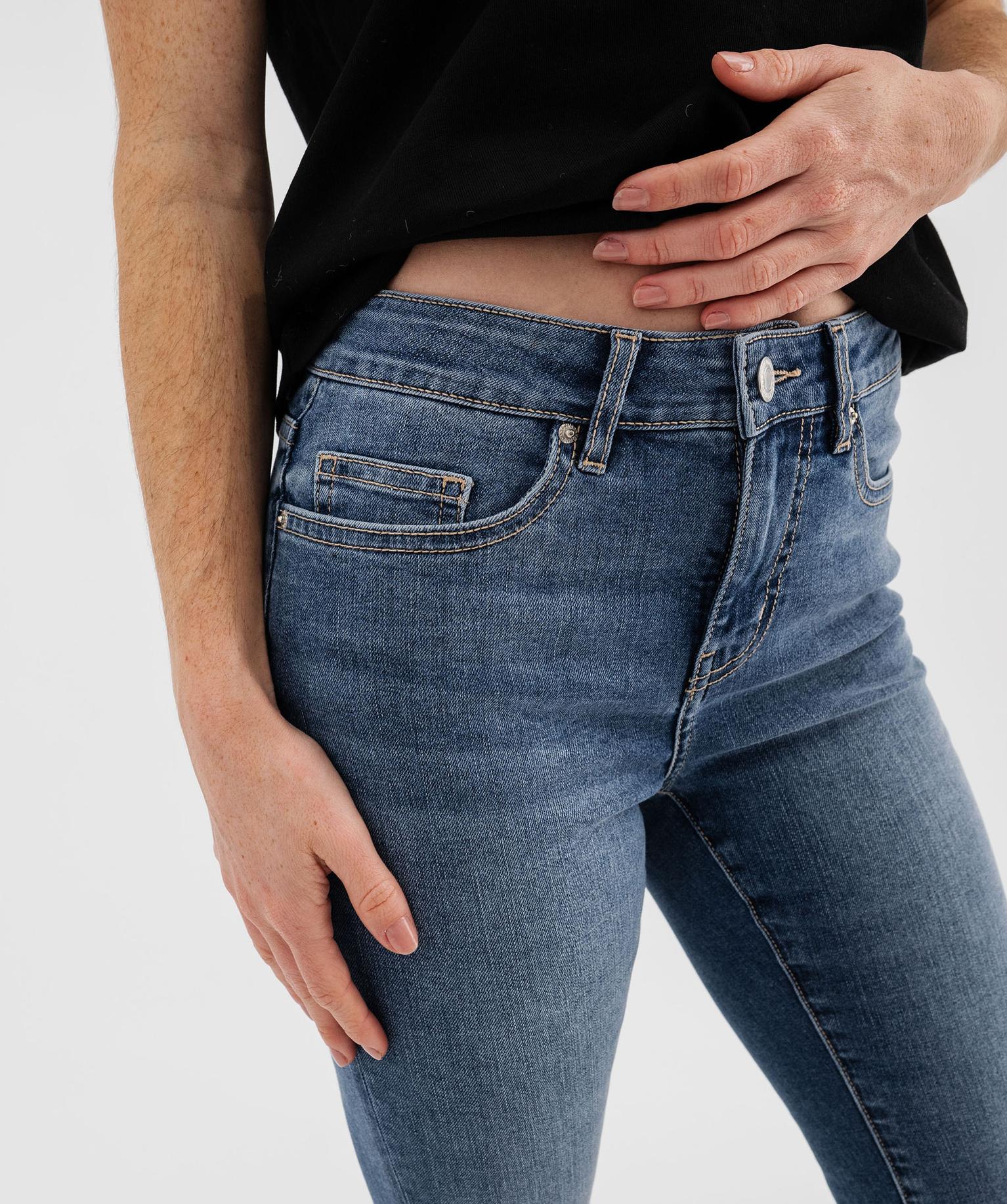 - Coupe bootcut : taille normale, jambe ajustée, bas évasé