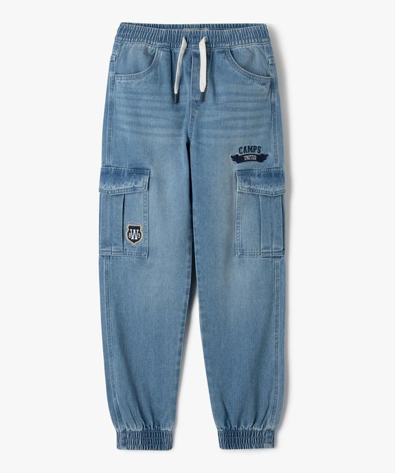 Jean cargo délavé à taille élastique garçon - Camps United bleu clair