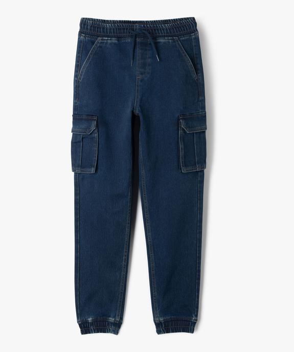 Jean cargo en denim délavé et extensible garçon bleu fonce