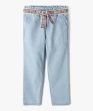 Jean carotte en denim 100% coton délavé à ceinture brodée fille bleu clair
