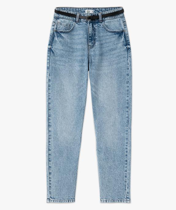 Jean coupe mom taille haute femme avec ceinture fine bleu clair