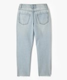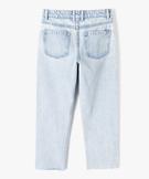 Ce jean Regular assure aux filles une allure tendance et décontractée. Sa taille haute flatte la silhouette, tandis que sa coupe courte, avec finitions légèrement effilochées et sans coutures, ajoute une touche moderne. Ce jean fille possède trois poches rivetées sur l’avant et deux poches plaquées au dos. Un jean délavé à porter avec un tee-shirt à manches longues et des baskets à plateforme, ou avec une paire de babies.