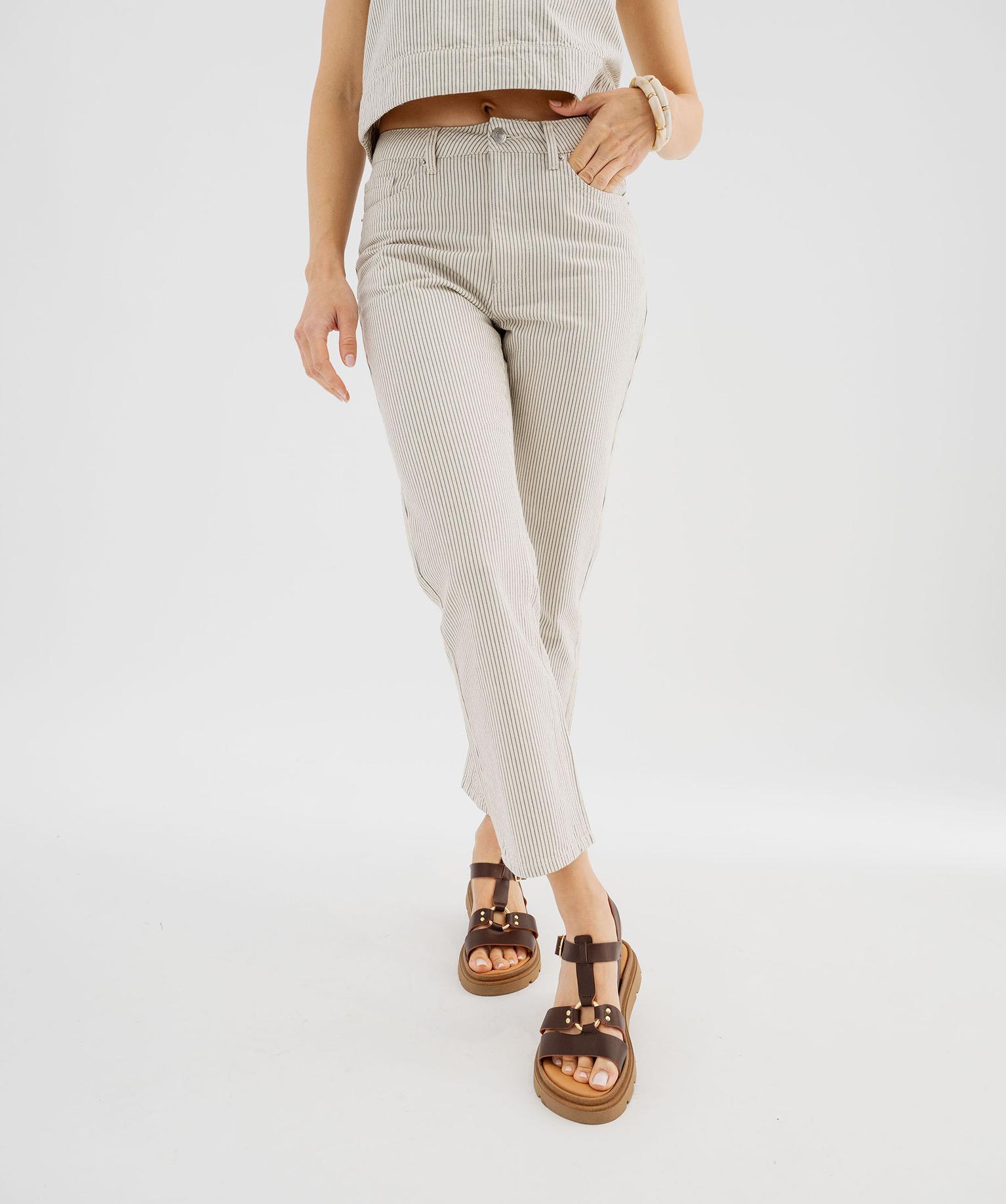 Jean cropped Straight taille haute à rayures femme ecru
