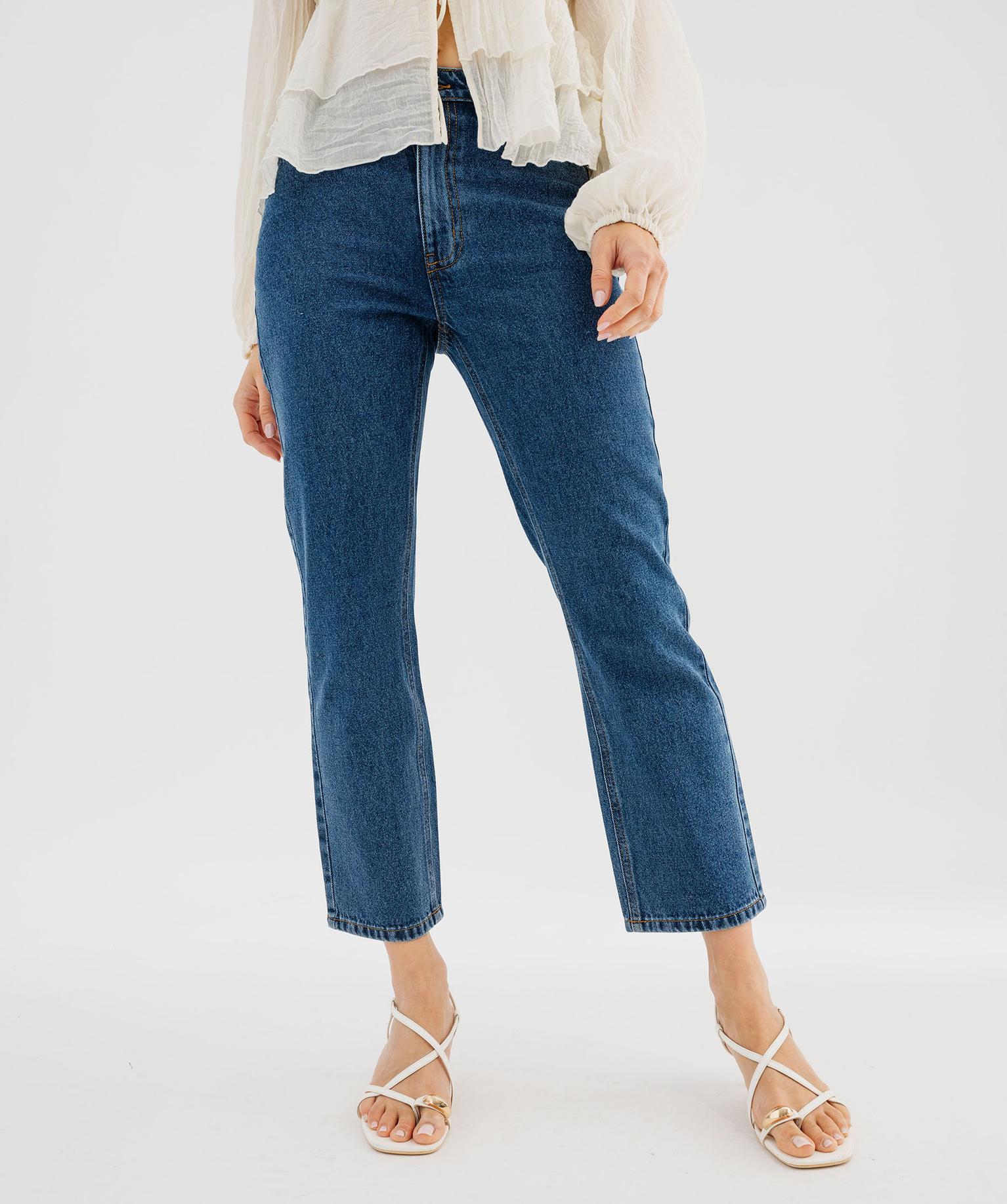 Jean cropped straight taille haute femme bleu