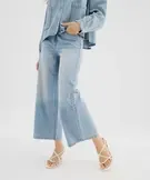 Ce jean femme en denim souple revisite les codes du style avec sa coupe large et sa longueur cheville. Un jean Wide leg taille haute qui sublime la silhouette et assure une allure ultra tendance. Il est doté d’une fine ceinture à nouer glissée dans de larges passants, permettant de structurer la taille avec élégance. Son coloris délavé, accentué sur les zones d’usure, lui assure une allure authentique et accentue son style décontracté. Ce jean cropped possède trois poches rivetées sur l’avant et deux poches plaquées au dos. Un modèle au style affirmé qui sera mis en valeur par une paire d’escarpins slingback. Fermeture par zip et bouton.