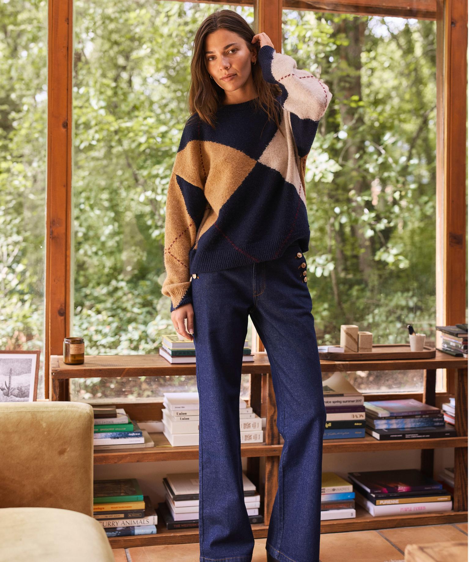 LuluCastagnette joue la carte des grands classiques en apposant des boutons dorés et gravés sur ce jean femme ! Placés au niveau des poches, ils donnent au jean une allure de pantalon à pont célèbre auprès des marins. Le jean femme est cependant 100% moderne, stylé et confortable : confection denim 100% coton, fermeture zip + crochet discrète, taille haute joliment ajustée grâce aux pinces au dos, 2 poches italiennes devant + 2 fausses poches passepoilées au dos. N'hésitez pas à mettre en valeur ces boutons décoratifs en portant ce jean droit et large avec un crop top ou un haut rentré dans la taille du pantalon.
