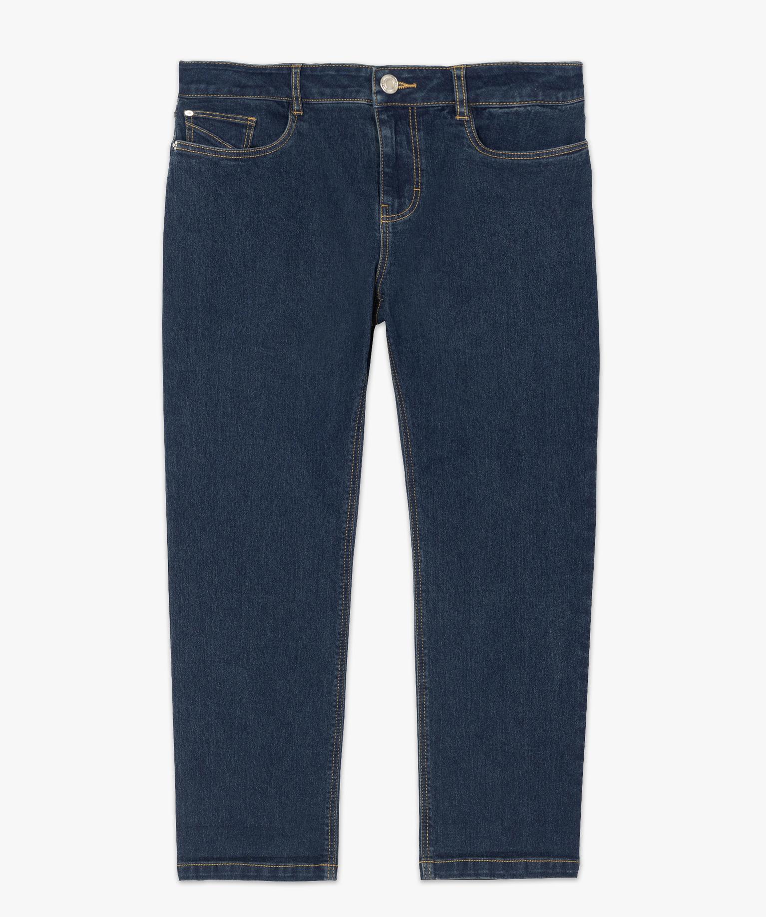 - Coupe Slim : taille normale, jambe ajustée, bas ajusté