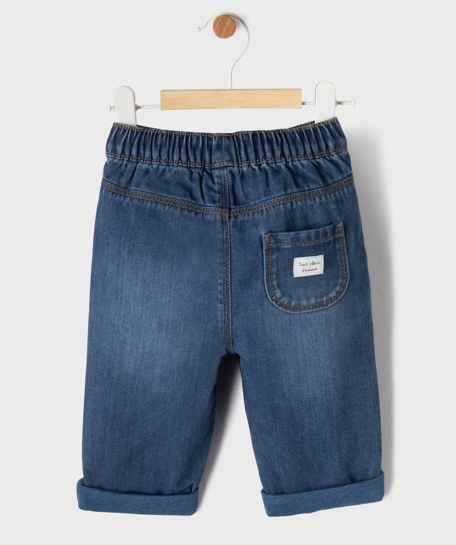Jean large avec taille élastique ajustable bébé garçon bleu fonce