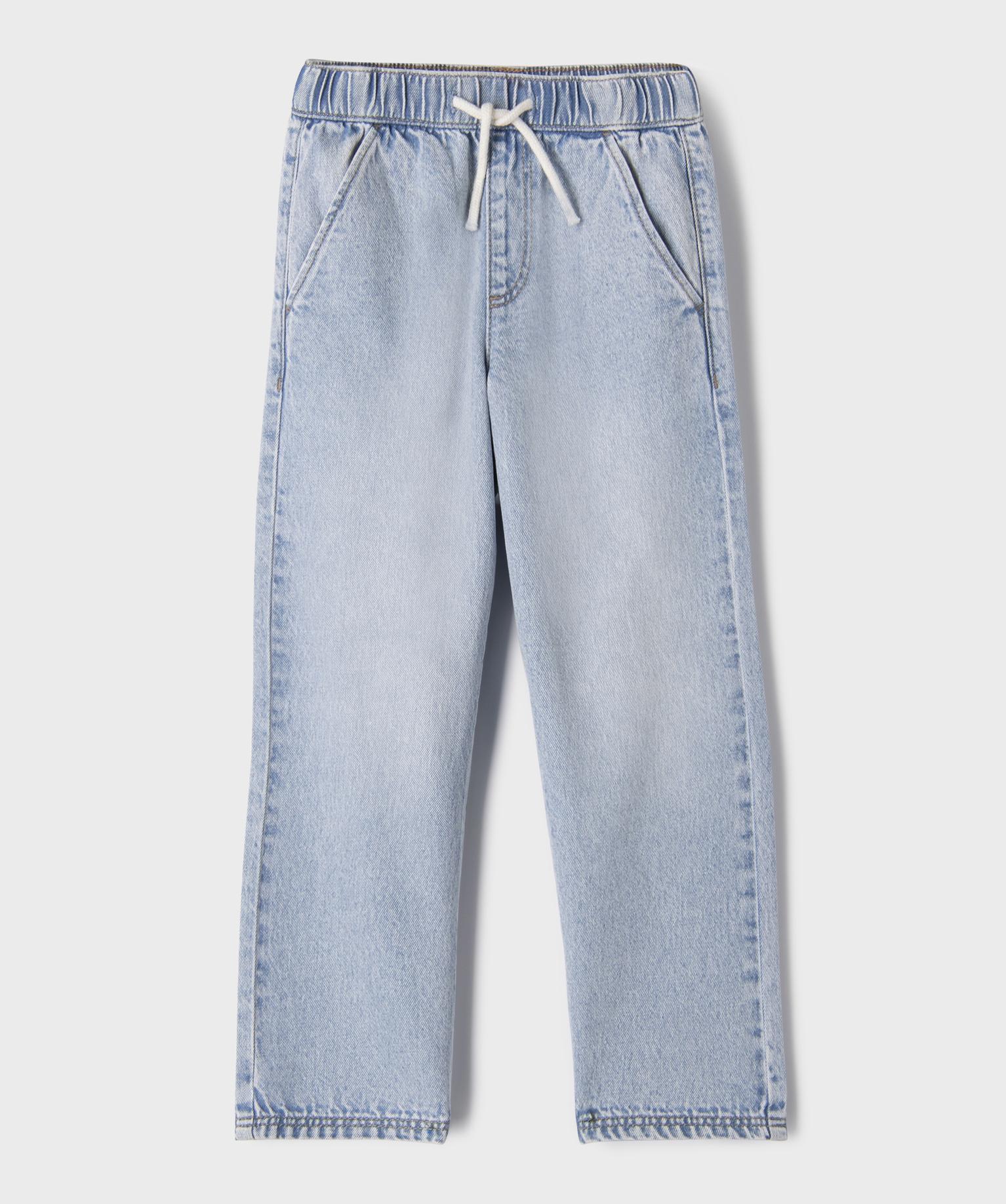 À intégrer d'urgence dans le dressing printemps-été de votre enfant : le jean large délavé. Avec sa taille élastiquée, le jean garçon s'enfile en un clin d'œil et accompagne votre bambin dans toutes ces aventures. Son denim 100% coton est fin et souple, parfait pour les beaux jours. Son petit plus : la ceinture se règle sur mesure à l'aide d'un système élastique discret. 2 poches italiennes devant + 1 poche plaquée au dos. Fausse patte de boutonnage. 2 liens à nouer devant.
