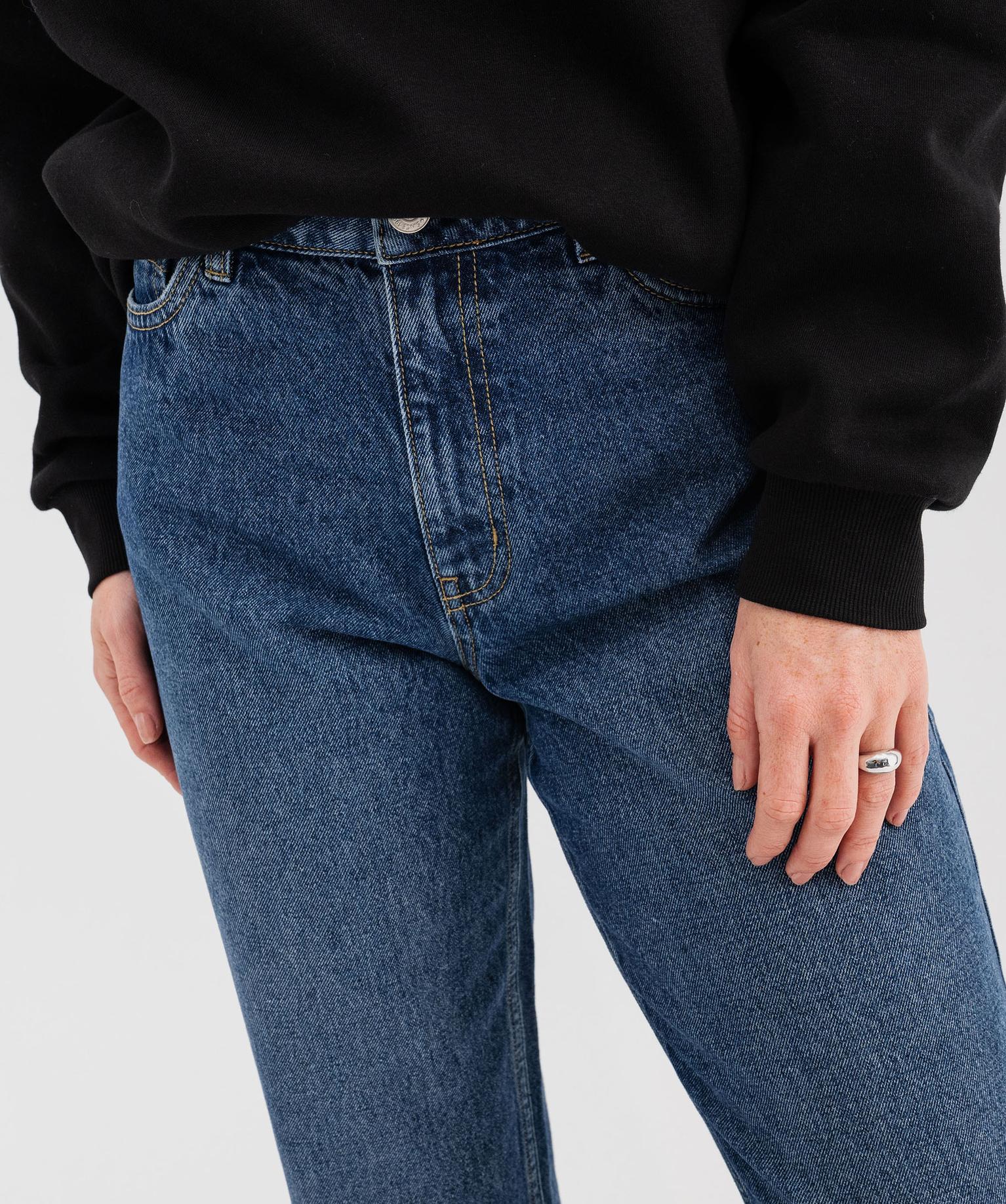 - Coupe Mom : cuisses larges, chevilles resserrée