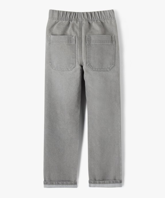 Gémo revisite le jean pour garçon dans une version plus confortable avec ceinture élastique. Un jean Regular à l’allure décontractée avec ses revers cousus dans le bas et ses larges poches plaquées sur l’avant. Un pantalon enfant totalement dans la tendance qui a su réunir confort et douceur.