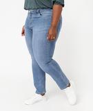 Craquez pour ce jean Regular au coloris légèrement délavé. Un jean femme grande taille (du 46 au 54) au look intemporel qui sera la base de nombreuses tenues décontractées. Un jean extensible très confortable agrémenté de surpiqûres contrastantes. Il se ferme par zip et bouton et possède deux poches sur l’avant et deux poches plaquées au dos. Il se porte en version cool avec un sweat et des baskets, comme en version élégante avec une chemise et des boots à talon.