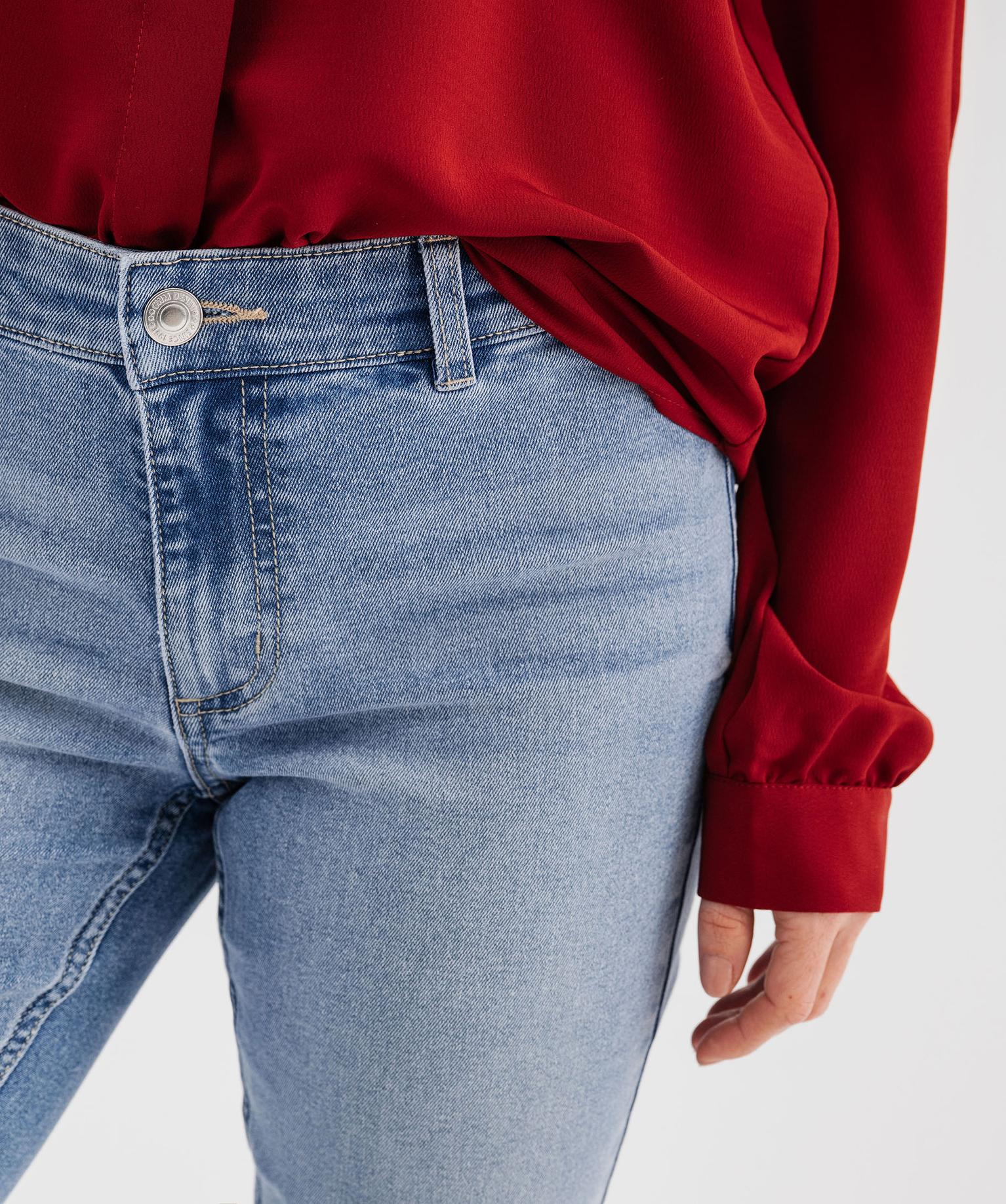 Indispensable du vestiaire féminin, le jean skinny allie style et confort. Sa coupe ajustée épouse naturellement les formes et allonge la silhouette, tout en restant agréable à porter grâce à sa matière extensible qui offre une totale liberté de mouvement. Doté d’une taille classique et d’une fermeture par zip et bouton, ce jean femme s’associe facilement à toutes vos envies de mode : porté avec un tee-shirt et des baskets pour une allure décontractée, avec une blouse fluide pour un style plus féminin, ou encore avec une veste tailleur et des escarpins pour une touche chic et moderne. Un jean extensible polyvalent et intemporel, pensé pour vous accompagner au quotidien, du matin au soir, en toute saison. Deux poches plaquées au dos.