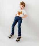 Ce jean skinny trouvera sa place dans la collection denim de votre enfant. Confectionné dans une toile denim extensible, il reste confortable tout au long de la journée et accompagne les enfants dans toutes leurs activités. Ce jean garçon affiche des marques d'usure qui lui confèrent une allure casual au top de la tendance. Il possède trois poches rivetées sur l’avant et deux poches plaquées au dos. Il se ferme grâce à un zip et un bouton et s’ajuste à chaque morphologie à l’aide d’un élastique dissimulé à la taille. Un essentiel du vestiaire à porter avec tous les hauts.