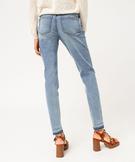 Ce jean skinny est incontestablement le plus « rock » du dressing avec son coloris délavé et ses bas de jambes sans coutures. Un jean femme original dont le bas semble avoir été rallongé. Confectionné dans une matière extensible, il est confortable et accompagne tous les mouvements. Restant fidèle aux codes du denim, il possède trois poches rivetées sur l’avant et deux poches plaquées au dos. Un jean stretch à porter avec un tee-shirt, des boots biker et un blouson court.