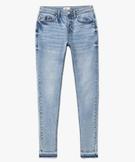 Jean skinny extensible taille normale avec bas sans coutures femme bleu clair