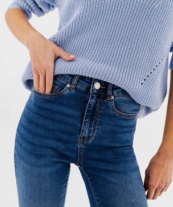 Indispensable jean skinny ! Le jean seconde peau en denim stretch pour un confort absolu, à porter avec vos blouses vaporeuses, vos chemises amples, vos tuniques imprimées, vos grosses mailles comme vos blazers ! Un jean long taille haute confectionné en matière extensible, qui souligne vos formes sans comprimer. Décliné dans des coloris élégants et faciles à porter, ce jean femme sera la base de nombreuses tenues. Fermeture zip et bouton. 3 poches rivetées devant + 2 poches plaquées au dos.