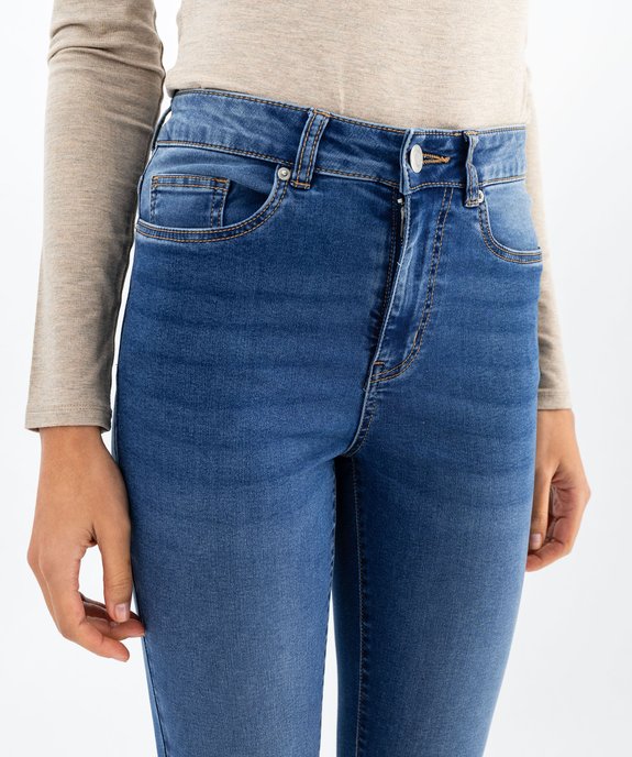 Ce jean skinny vous accompagnera dans tous vos looks. Un pantalon femme qui respecte les codes du jean : poches rivetées sur l’avant, poches plaquées au dos et fermeture par zip et bouton. Un jean taille haute qui sublime la ligne et assure un maximum de confort grâce à sa matière extensible. Caméléon, il s’adapte à toutes vos envies et s’intègre aussi bien dans un look sportswear avec un sweat à capuche, que dans un look élégant avec une chemise et une veste de tailleur.