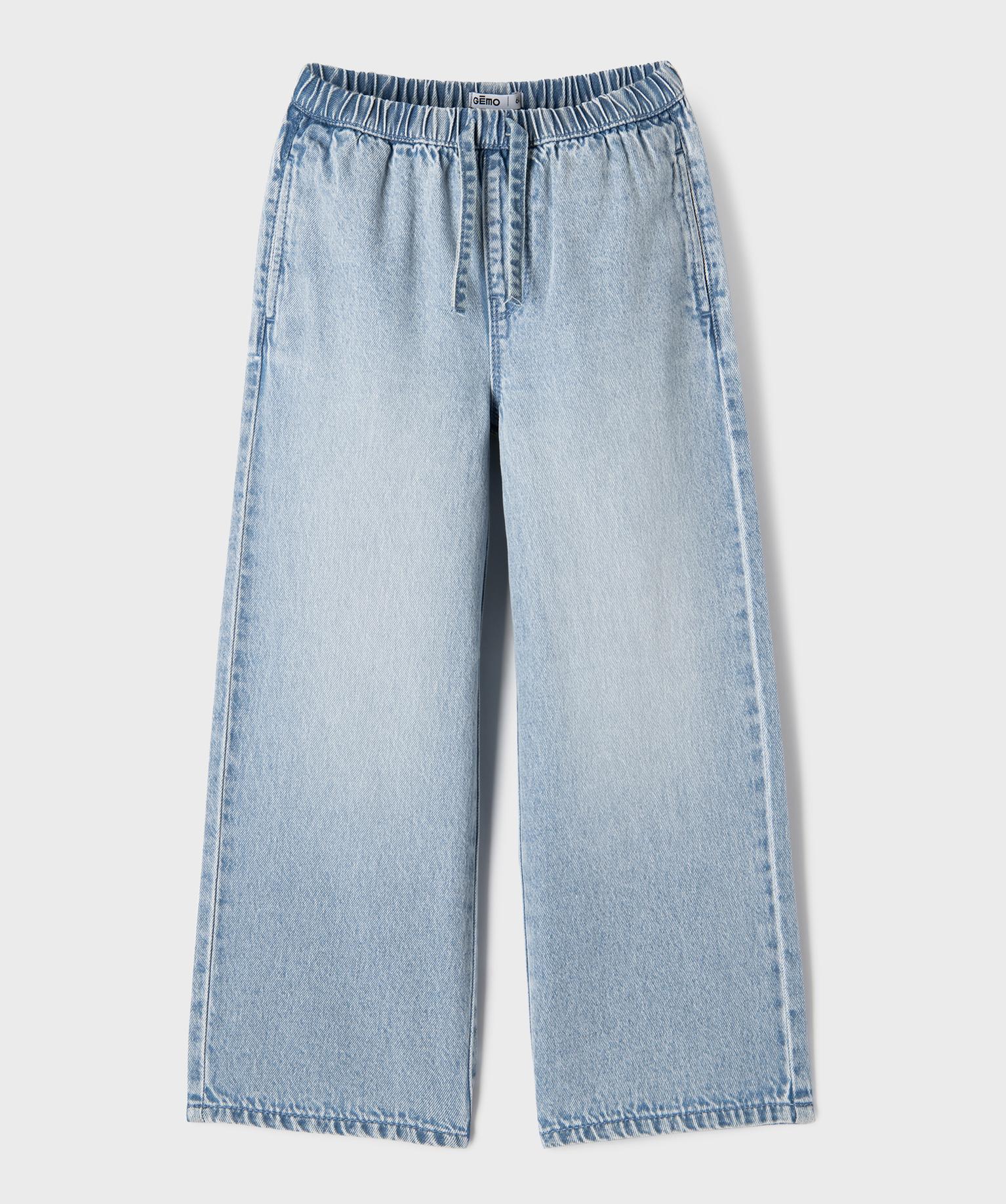 Jean Straight avec taille élastique ajustable fille bleu clair