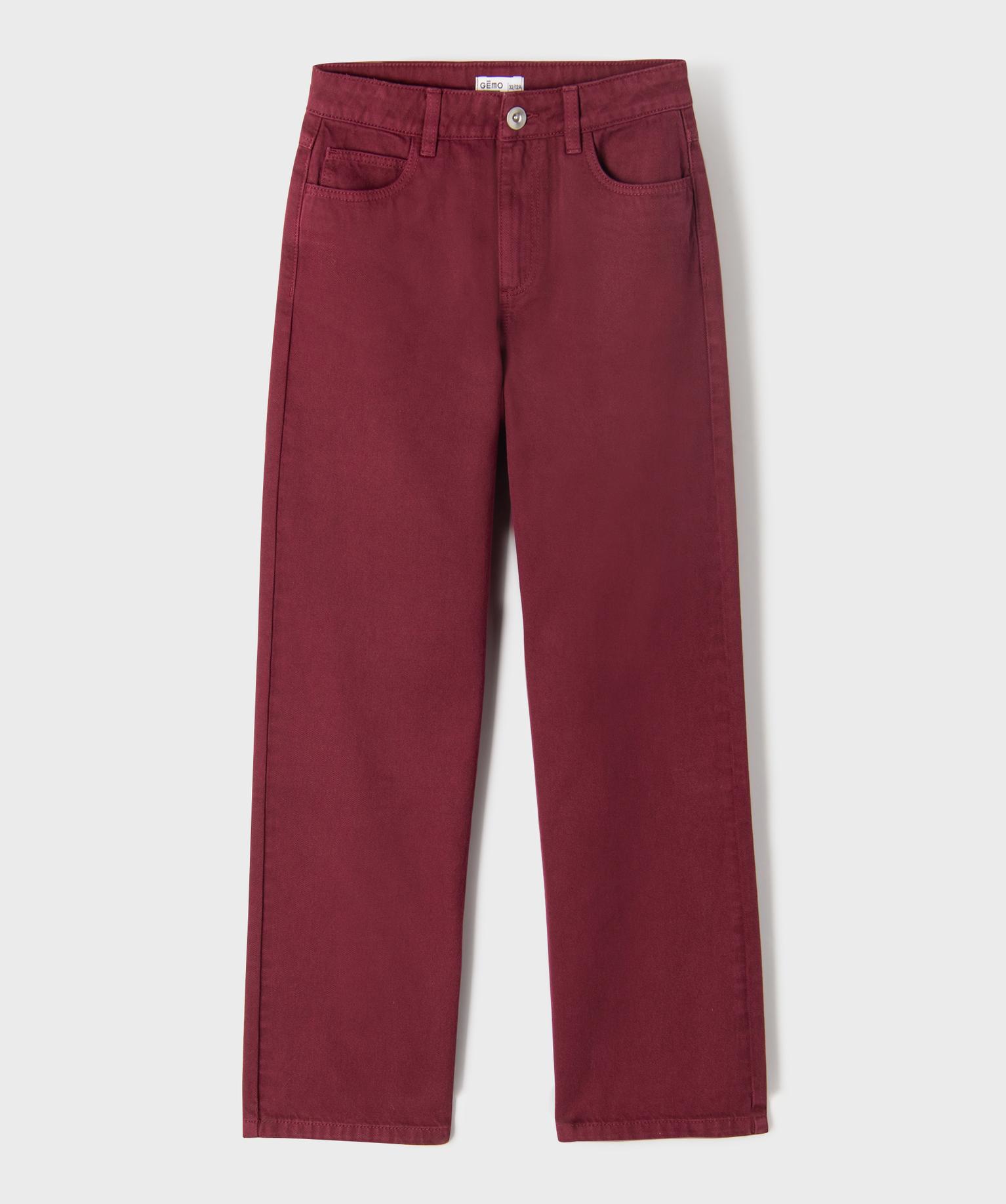 Jean Straight coloré avec taille ajustable fille rouge fonce