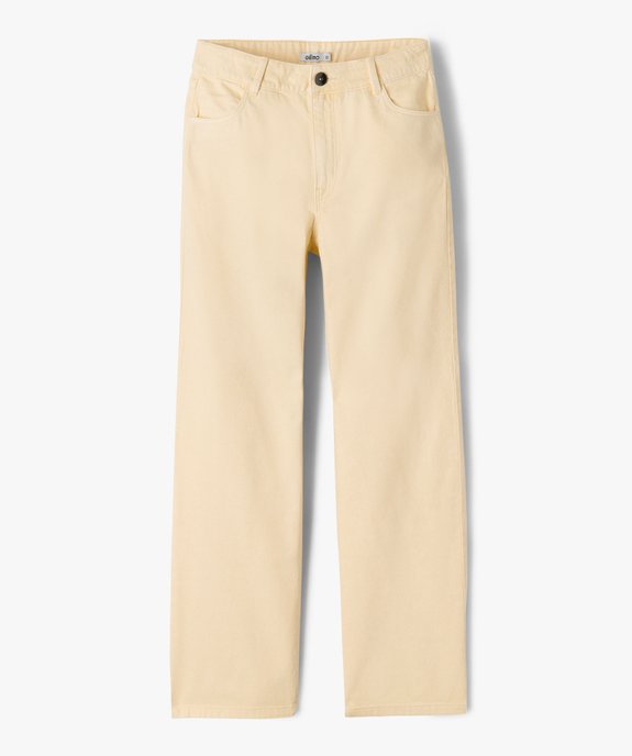Ajoutez une touche de couleur dans le vestiaire denim des ados grâce à ce jean fille au coloris acidulé. Ce coloris, unique d’un modèle à l’autre, est obtenu grâce à un procédé de teinture spécifique. Ce jean Straight épouse parfaitement la silhouette et assure une allure au top de la tendance. Il possède un élastique dissimulé à la taille assurant un ajustement parfait. Ce jean coloré se porte avec un tee-shirt, un sweat ou un pull au gré des envies. Deux poches devant et deux au dos.