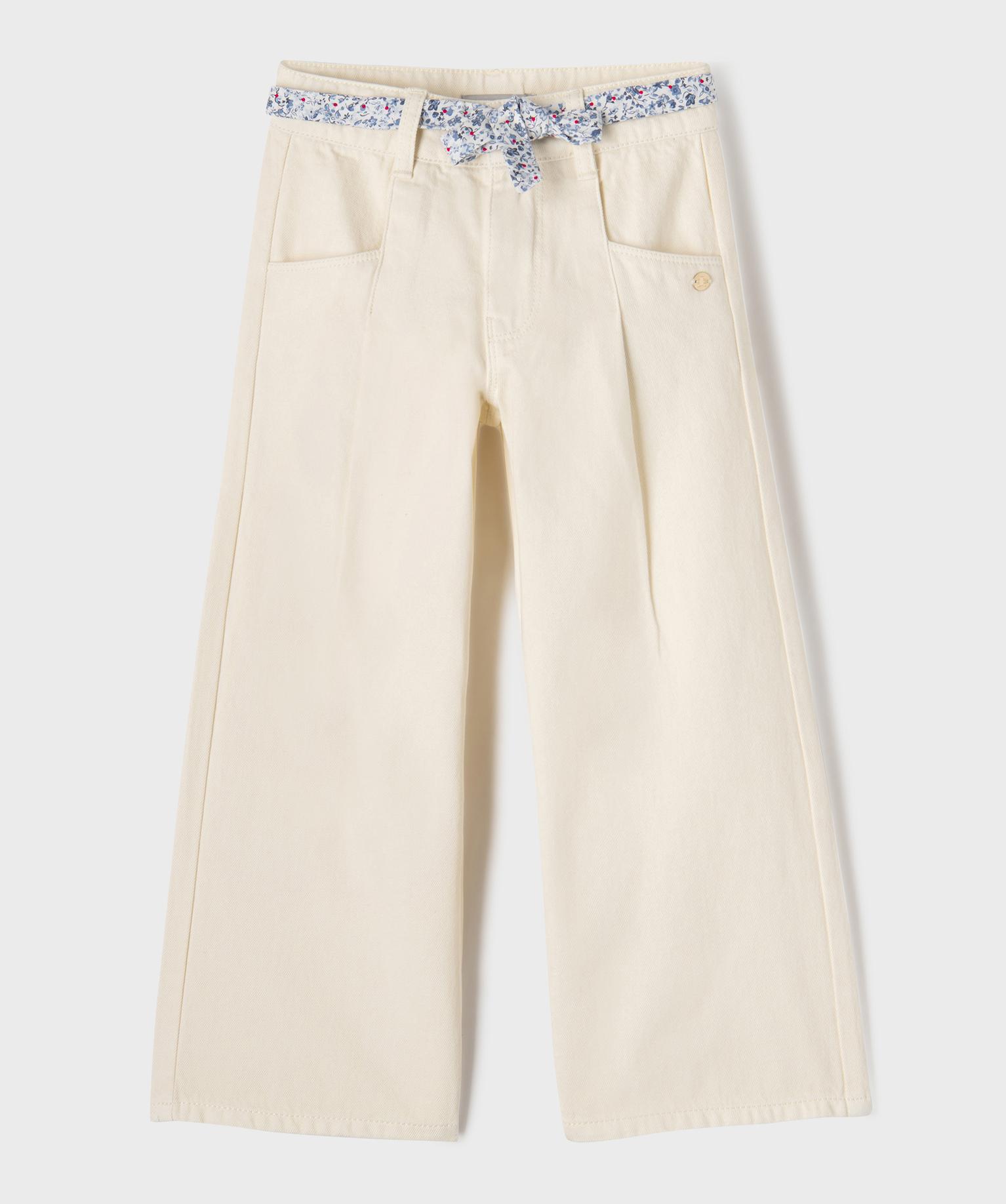 Jean Wide leg avec ceinture fantaisie fille - LuluCastagnette ecru