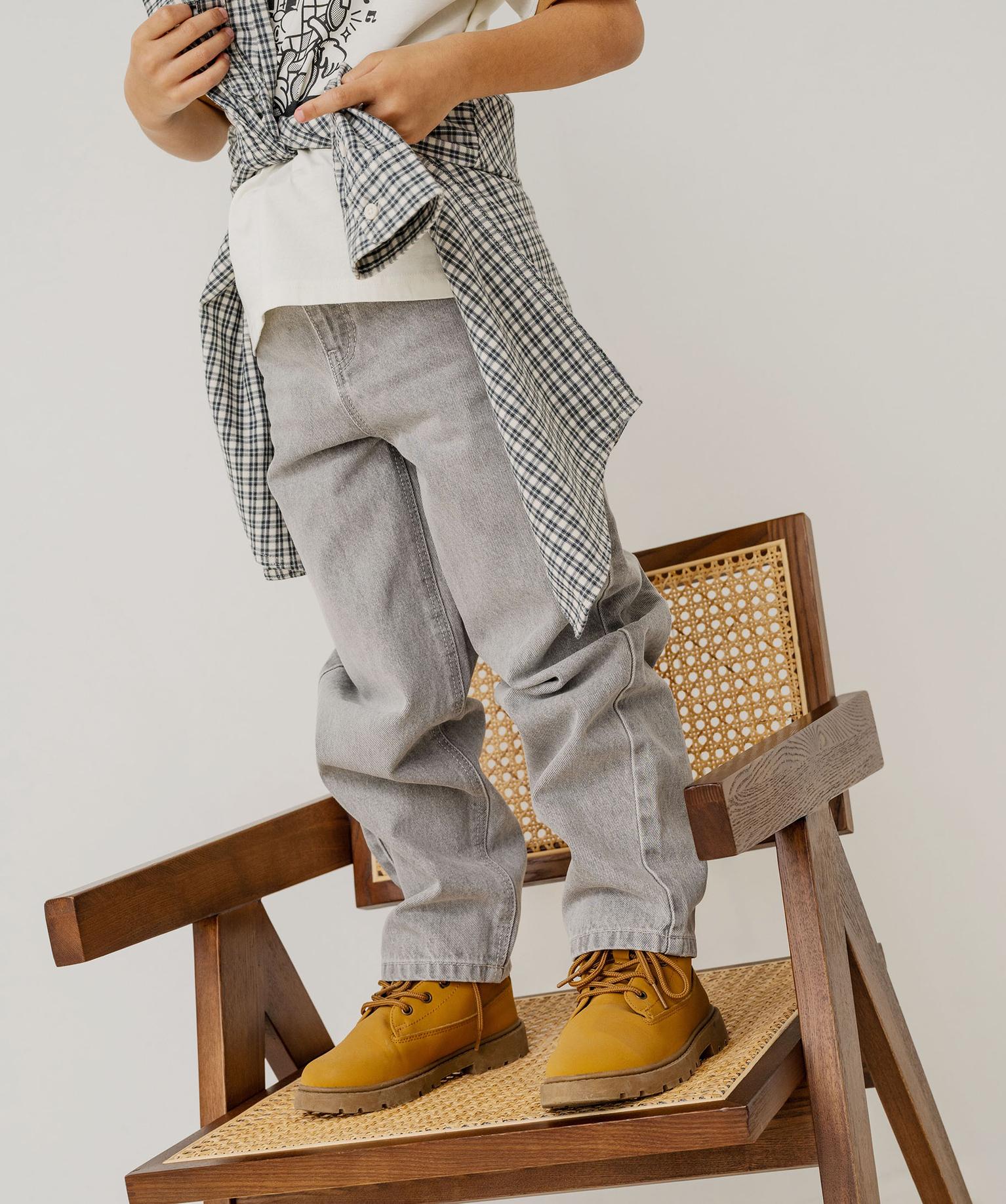 Jean Wide leg avec taille ajustable garçon gris clair