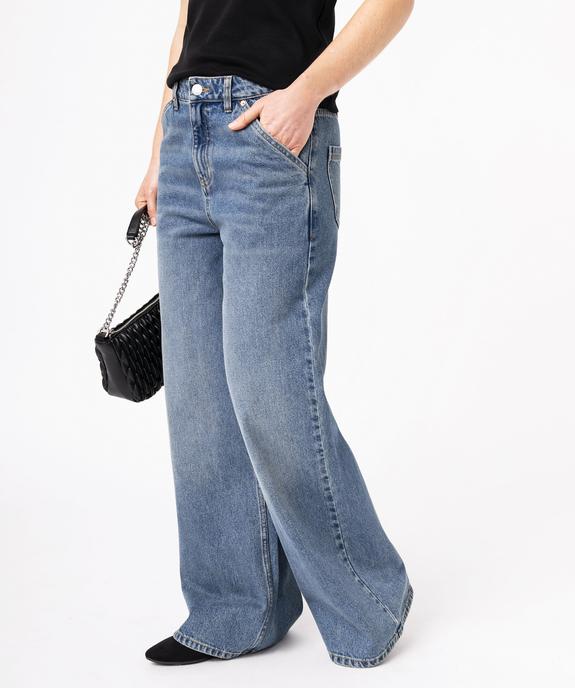 Ajoutez sans attendre ce jean ample dans votre dressing. Un jean wide leg incontournable cette saison pour composer des looks décontractés au top de la mode. Un jean femme au coloris délavé affichant de légères marques d’usures et doté d’une bride sur l’une des hanches. Il possède une taille haute qui, agrémentée d’une ceinture, permettra de mettre la taille en valeur. Il possède deux poches rivetées sur l’avant et deux poches plaquées au dos. Un jean large à porter avec un tee-shirt court et des baskets à plateforme.