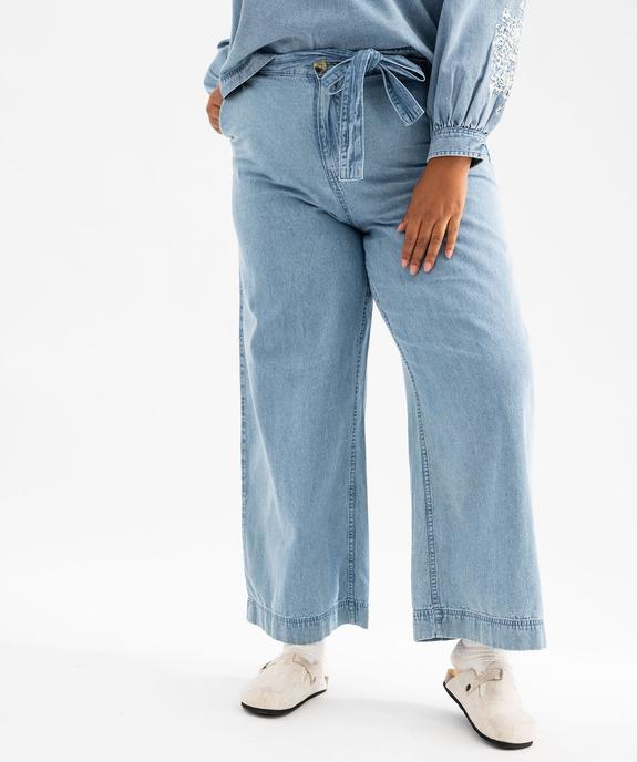 Jean wide leg en denim de coton fin avec ceinture à nouer femme grande taille bleu chine