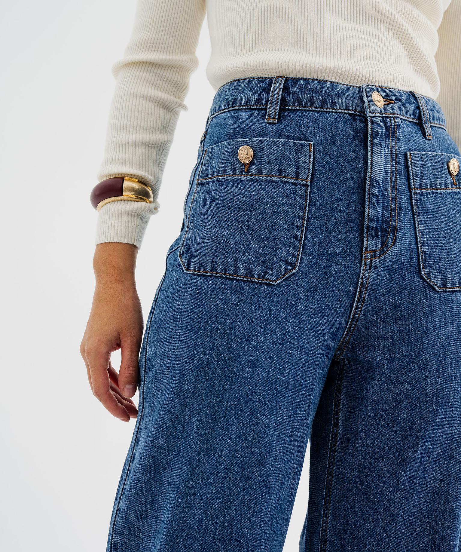 Jean wide leg taille haute avec poches plaquées femme - LuluCastagnette bleu