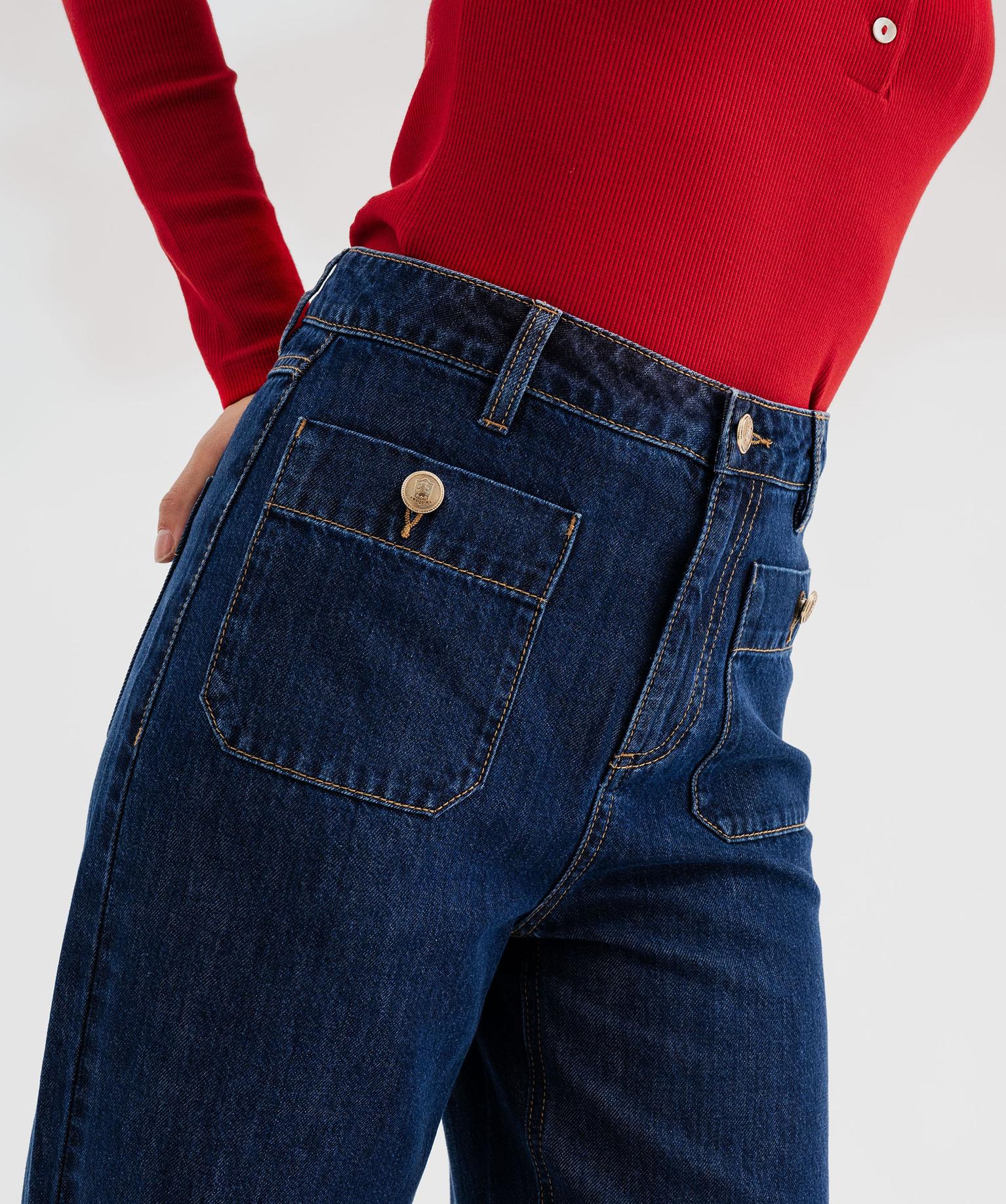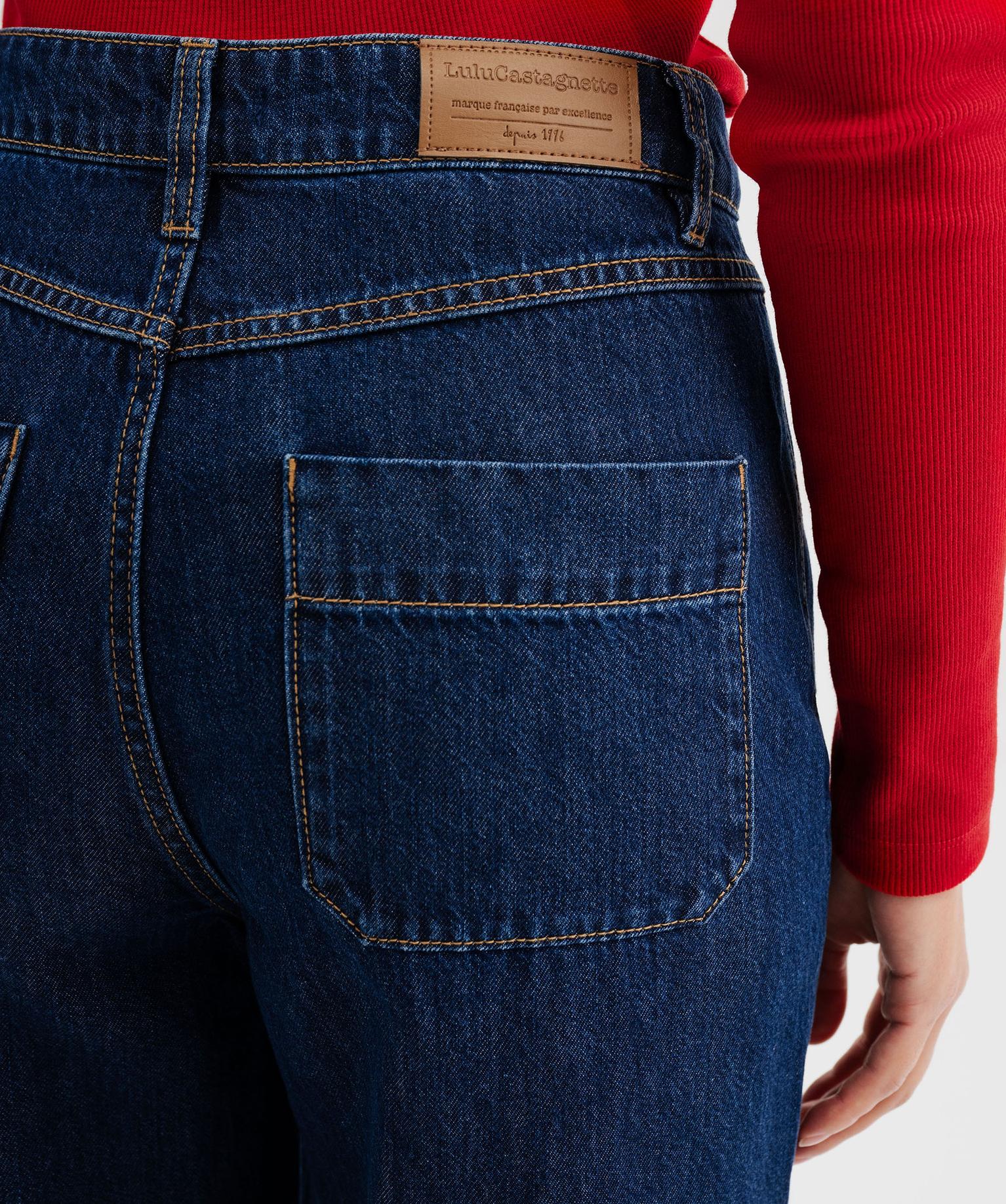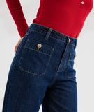 Jean wide leg taille haute avec poches plaquées femme - LuluCastagnette bleu fonce