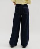Jean wide leg taille haute élastiquée femme bleu fonce