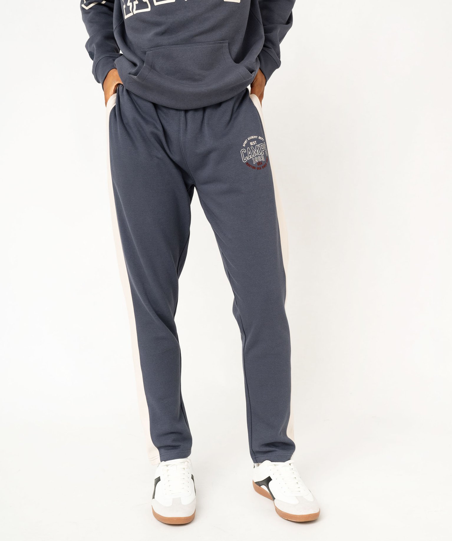 Camps United vous propose une version moderne et tendance du pantalon de jogging ! Craquez pour le jogging large ! Un pantalon de jogging pour homme confectionné dans un molleton gratté, doux et confortable. Le pantalon de sport présente une coupe droite avec une jambe large mise en valeur par une bande contrastante. Il est monté sur une taille élastique ajustable par cordon coulissant. Il possède 2 poches sur les côtés et 1 poche plaquée au dos. Il est imprimé sur la jambe gauche.