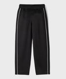 Apportez une touche rétro au look sport de votre enfant avec ce pantalon de jogging garçon. Sa matière extensible, souple et légèrement satinée lui donne du caractère tout en restant agréable à porter. Les passepoils contrastants sur les côtés signent un style vintage réussi. La ceinture élastiquée à cordon coulissant assure un maintien confortable. Le jogging présente une jambe large resserrée dans le bas. Deux poches discrètes dans les coutures complètent le modèle.