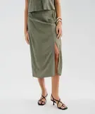 Jupe à taille élastiquée en viscose fluide imprimée femme vert