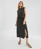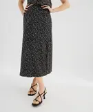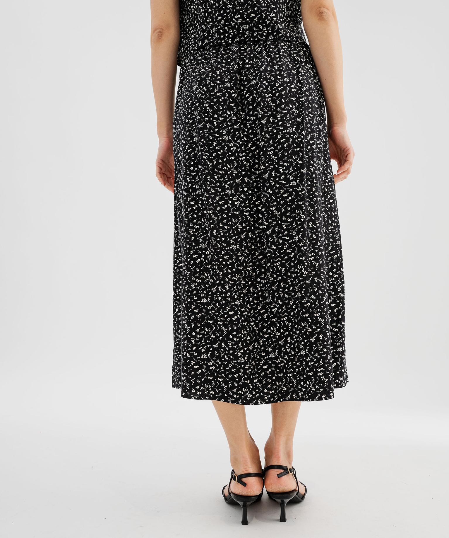 Jupe à taille élastiquée en viscose fluide imprimée femme noir