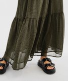 Adoptez un look bohème chic avec cette jolie jupe longue composée de plusieurs empiècements froncés. Une jupe femme confectionnée dans un voile léger, avec une doublure fine pour limiter la transparence. Elle possède une ceinture élastique permettant un habillage facile, qui reste confortable tout au long de la journée. Une jupe imprimée à porter avec un tee-shirt uni et des baskets, ou avec une blouse et des sandales scintillantes pour une allure plus sophistiquée.