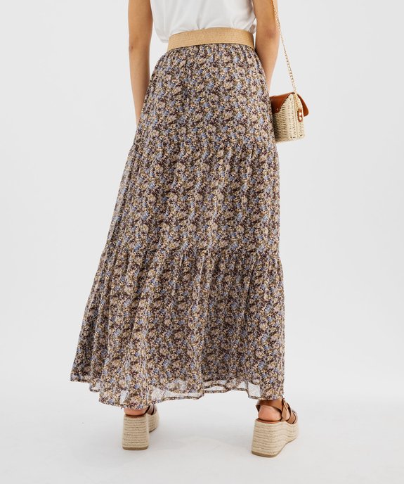 Adoptez un look bohème chic avec cette jolie jupe longue composée de plusieurs empiècements froncés. Une jupe femme confectionnée dans un voile léger, avec une doublure fine pour limiter la transparence. Elle possède une ceinture élastique permettant un habillage facile, qui reste confortable tout au long de la journée. Une jupe imprimée à porter avec un tee-shirt uni et des baskets, ou avec une blouse et des sandales scintillantes pour une allure plus sophistiquée.