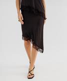 Apportez une touche glamour à vos tenues avec cette jupe femme au bas asymétrique. Rehaussée d’une large bande de dentelle ton sur ton, cette jupe midi marie féminité et élégance. La taille élastiquée plate assure un tombé impeccable et un confort optimal. Sa matière satinée, fine et fluide, confère légèreté et délicatesse à vos mouvements. La couleur chaleureuse et riche apporte un fini chic à vos différents hauts. À oser avec une grosse maille et des boots crantés !