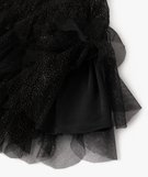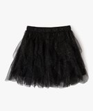 Cette jupe courte pour fille est idéale pour toutes les occasions festives. En tulle léger, elle se distingue par sa superposition de volants ornées de paillettes dorées. Parfaite pour donner une touche scintillante aux tenues de fête de votre enfant. La jupe possède une ceinture élastiquée assure un confort optimal et un enfilage facile. Pour un confort supplémentaire, elle est doublée en maille extensible. À combiner aussi bien à un crop top, qu'à un pull duveteux ou une chemise col Claudine.