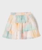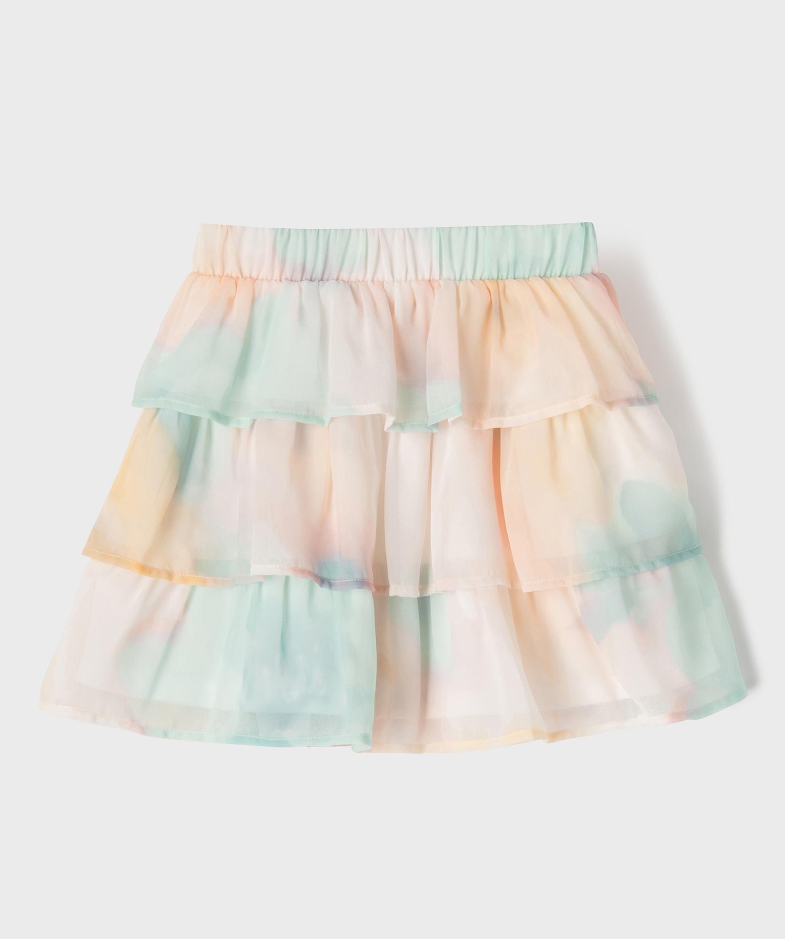 Cette jupe courte pour fille mise sur un joli jeu de volants pour offrir ampleur, mouvement et fashion attitude ! Elle est montée avec un large élastique à la taille pour un ajustement et un maintien confortables. La jupe est confectionnée dans un voile tie and dye aérien et doublée pour éviter toute transparence tout en conservant son charme léger et délicat.