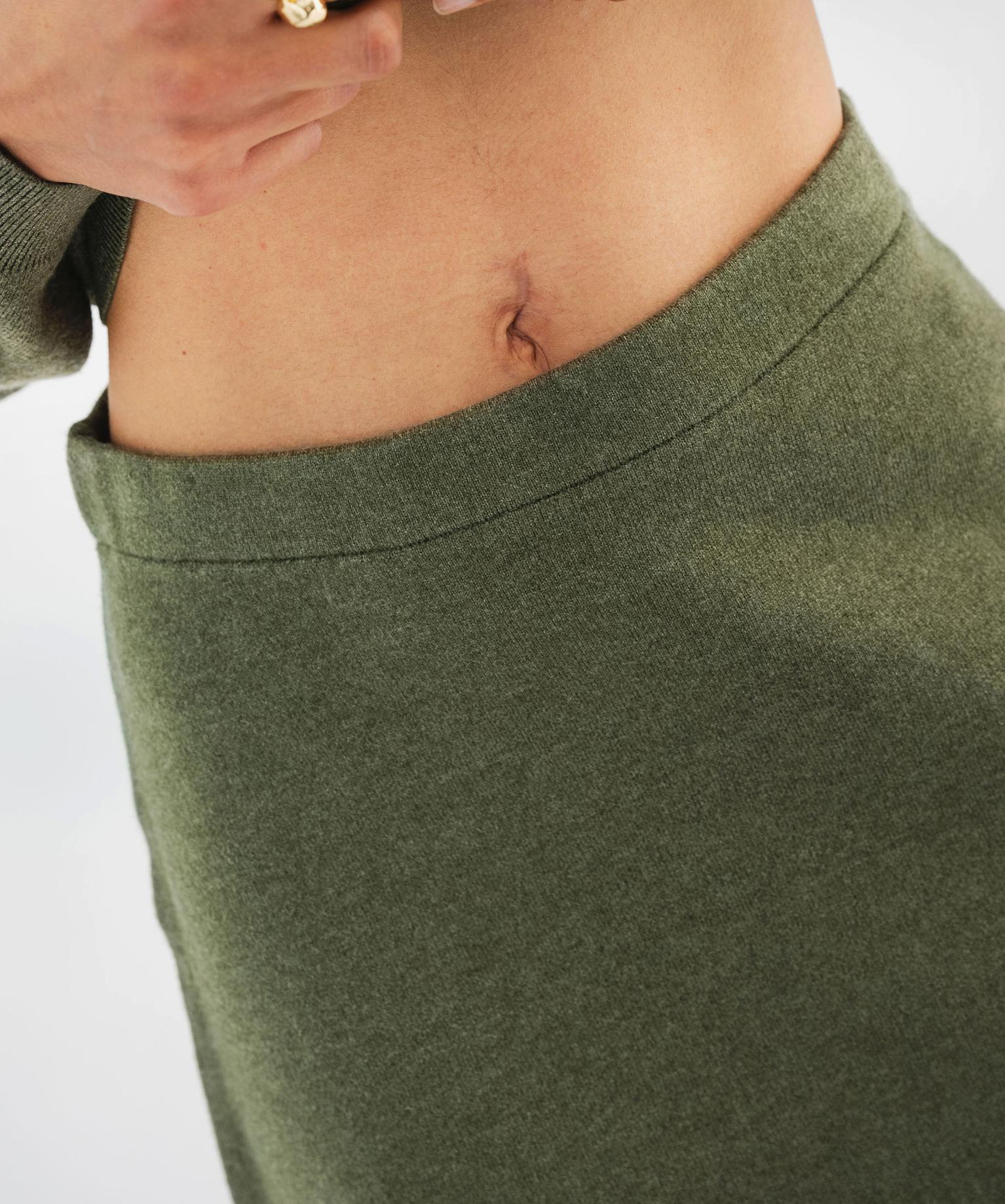 Jupe courte en maille coupe trapèze femme kaki