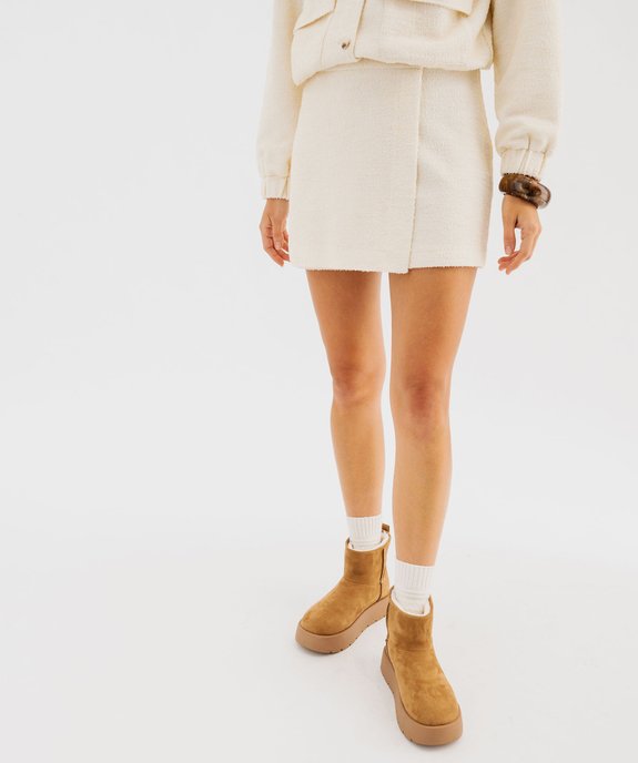 Jupe courte portefeuille en maille bouclette extensible femme ecru