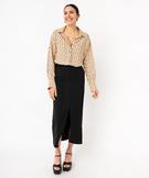 Droite et près du corps, la jupe crayon est une pièce élégante et glamour du vestiaire féminin. Synonyme de sophistication, cette jupe femme n'en reste pas moins très confortable grâce à sa confection en matière extensible. Sa fente sur l'avant dévoile joliment vos jambes tout en assurant un bon confort de marche. La jupe longue se ferme par zip et bouton. Elle possède des passants pour ceinture, 2 poches italiennes et une couture milieu sur l'arrière.