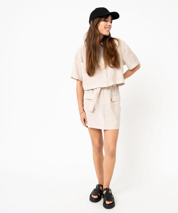 Succombez à la jupe en modal froissé pensée pour un look féminin, moderne et décontracté. Une jupe courte et droite, avec de grandes poches plaquées à rabat et une ceinture à nouer sous passants qui lui confèrent une allure de baroudeuse. À associer avec une veste saharienne ou la chemisette assortie. La jupe légère et fluide est munie d'un large élastique à la taille pour un enfilage rapide et un confort absolu.