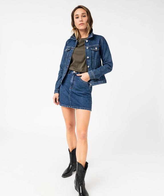 Jupe en jean courte coupe trapèze femme bleu clair