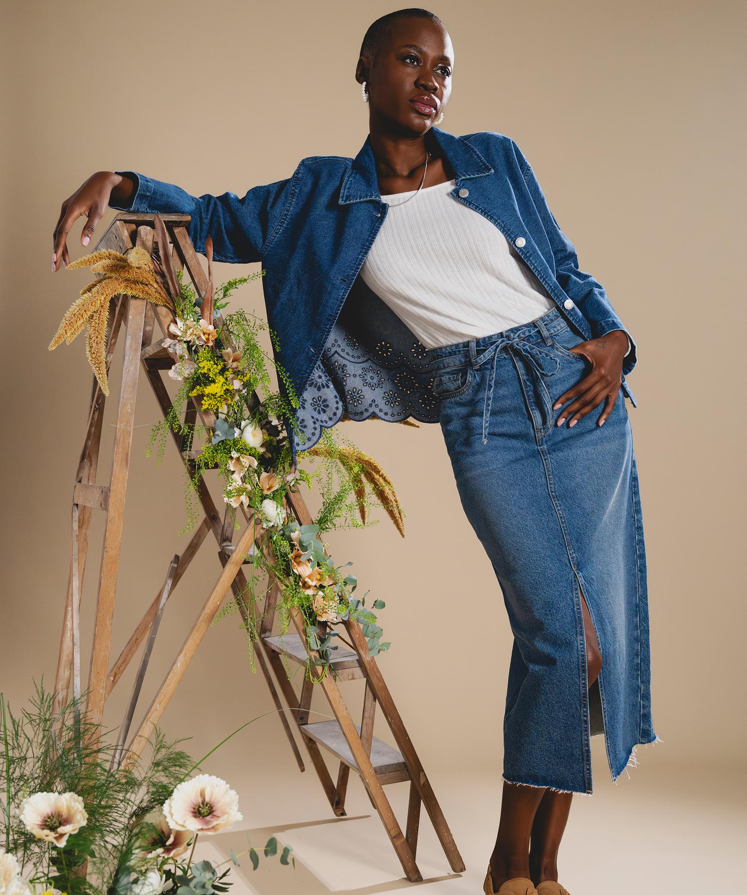 Cette jupe en jean longue pour femme revisite le jean classique avec une touche moderne. Sa coupe droite ajustée met la silhouette en valeur tout en restant confortable à la marche grâce à la séduisante fente devant. Le bas à bords francs accentue son look casual et authentique. Confectionnée en denim 100% coton, cette jupe longue est subtilement délavée. On lui retrouve les codes essentiels du jean : trois poches rivetées devant, deux poches plaquées au dos et une fermeture zip + bouton. La ceinture amovible à nouer sous passants permet de marquer la taille et d'accessoiriser le modèle. Une jupe en jean à porter avec un débardeur côtelé et des mules.