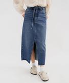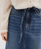 Jupe en jean longue et fendue avec ceinture à nouer femme bleu